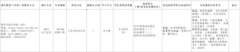 我院2026年招生的全日制硕士专业学位类别为电子信息(0854)。具体信息详见《泰山学院2026年硕士研究生招生专业目录》。其中控制工程方向(085406)计划招生7人。