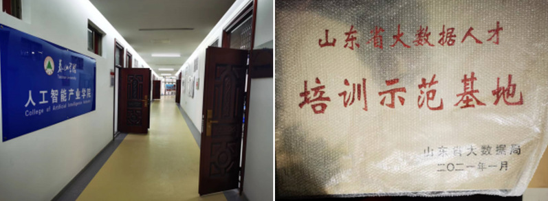 图1.人工智能产业学院与山东省大数据人才培训示范基地