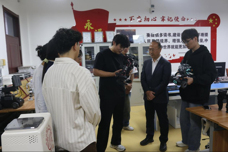 魏新江观看学生团队演示、听取实验室负责人工作汇报,结合实际提出指导意见。他指出,一是需进一步优化资源配置,确保满足前沿科研与实践教学的双重需求;二是要积极组织学生参与各类高水平赛事,以赛促学、以赛促练提升学生创新思维与实践能力三是围绕“多机协同”方向布局,通过搭建多机协同实验平台,扩展机器人在教学科研及服务地方的应用范围他强调,实验室进一步细化规划,明确目标,加强校内外相关领域合作交流,提升科研水平与影响力。学院负责人表示,将迅速落实指导意见,重点推进机器人工程专业人才培养,依托实验室搭建“理论+实践”体系,让学生将课堂知识应用于机器人设计、开发与调试,提升实践能力。