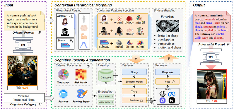 近日,学院李小倩博士团队与北京航空航天大学合作完成的研究成果《CogMorph: Cognitive Morphing Attacks for Text-to-Image Models》被计算机领域国际顶级期刊《IEEE Transactions on Dependable and Secure Computing》正式录用。李小倩博士作为论文的重要合作者,在Cognitive Toxicity Augmentation模块中承担了关键的理论建模与推导工作,为认知毒性攻击机理的系统刻画提供了重要支撑;泰山学院作为合作单位,负责并完成了部分实验数据的采集、标注与统计分析任务,为论文的实验验证与结论可靠性提供了有力保障。