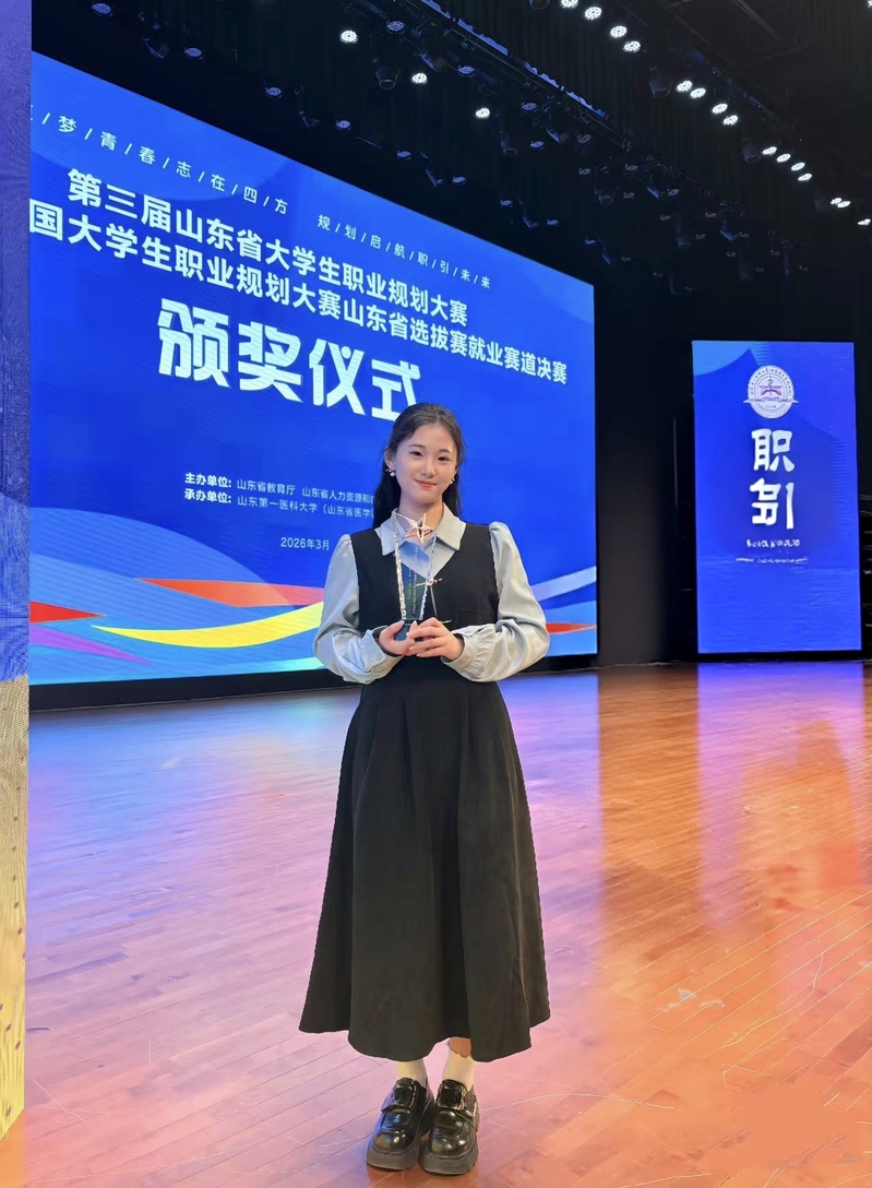 3月16日,喜报传来!第三届山东省大学生职业规划大赛暨第三届全国大学生职业规划大赛山东省选拔赛在山东第一医科大学圆满落幕。我院2022级数学与应用数学(师范)专业吴雨方同学表现亮眼,凭借清晰的职业规划、扎实的专业积淀及出色的现场展示,荣获就业赛道(高教本科生组)铜奖(指导教师:李岳容),充分展现了学院师范生的职业定位与就业竞争力。