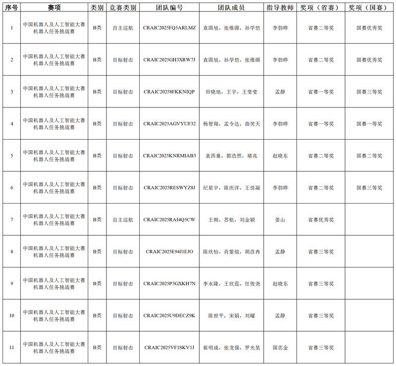 2025年中国机器人及人工智能大赛 机器人任务挑战赛获奖统计